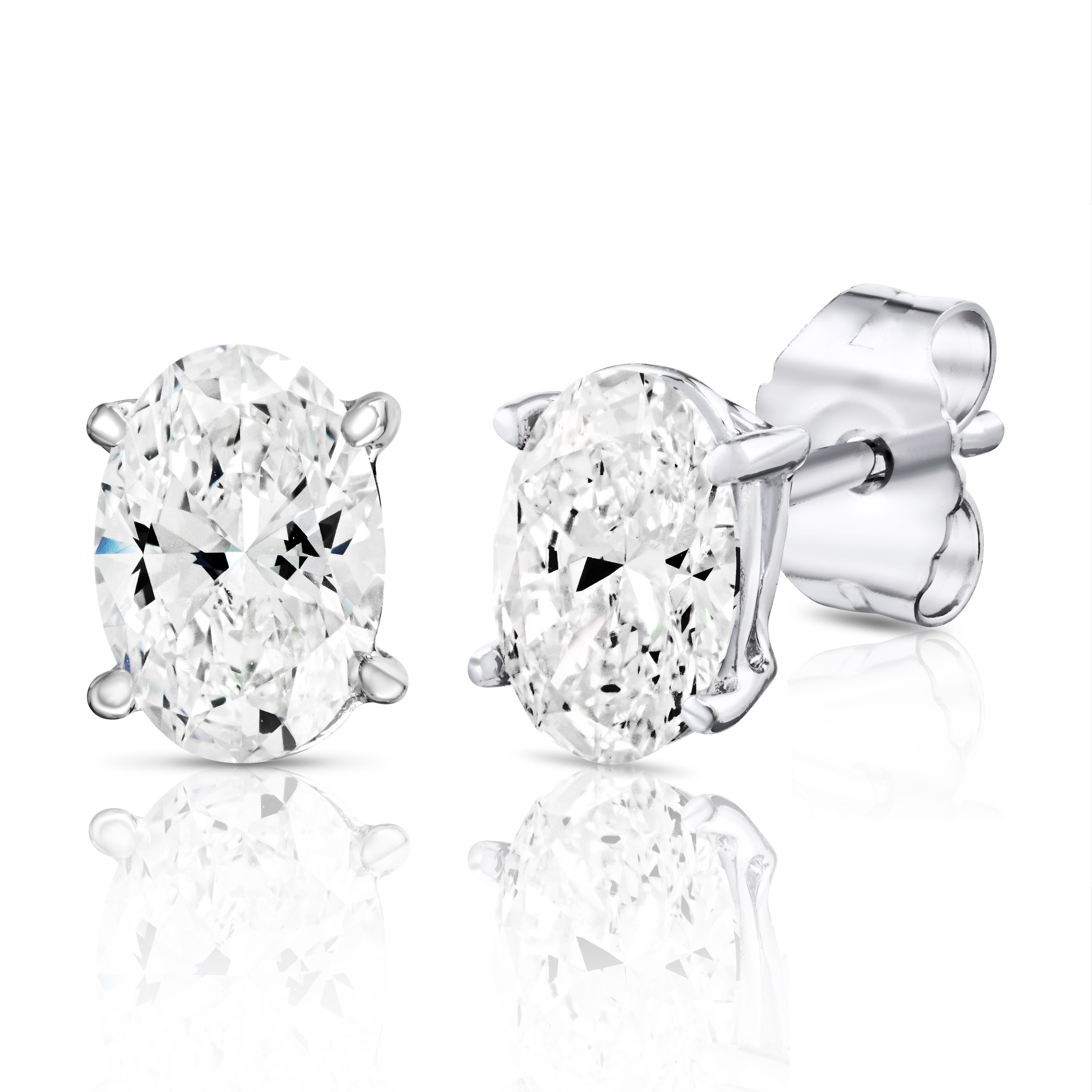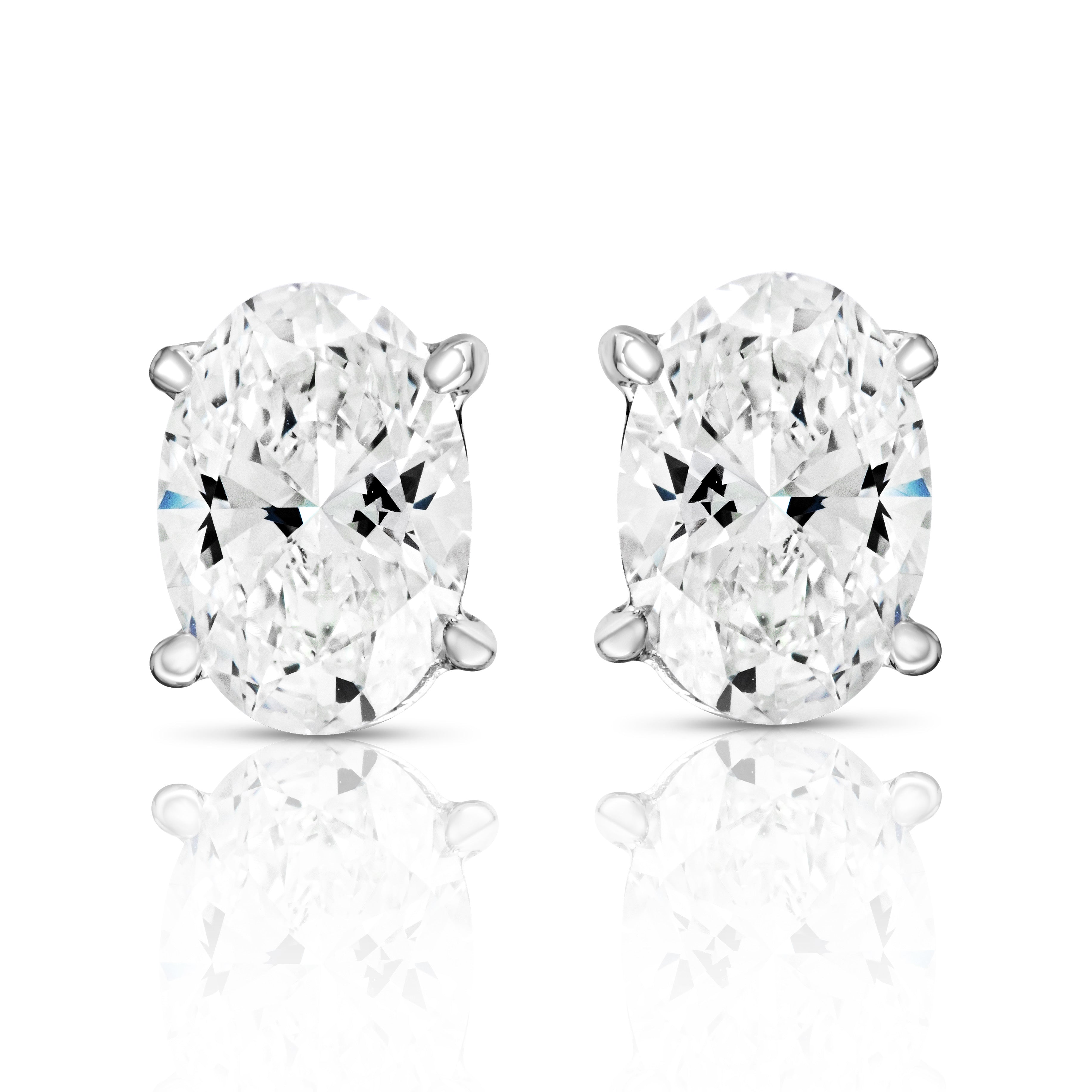 Certified 14 Karat White Gold Lab Grown Oval Shape Diamond Stud Earrings ( starting at 1/2 carat )