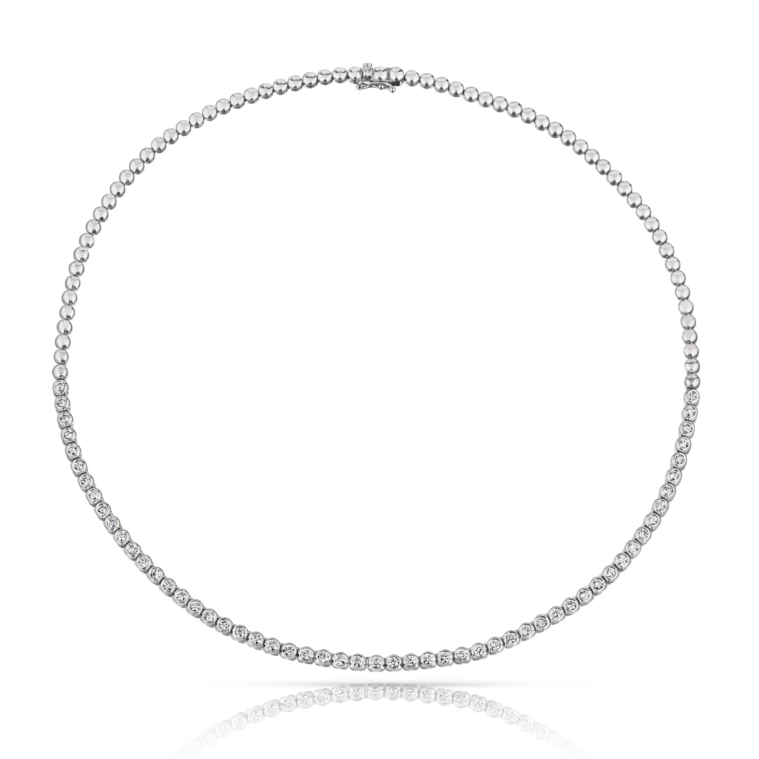 Half-Way Bezel Set White Gold Natural Diamond Tennis Necklace