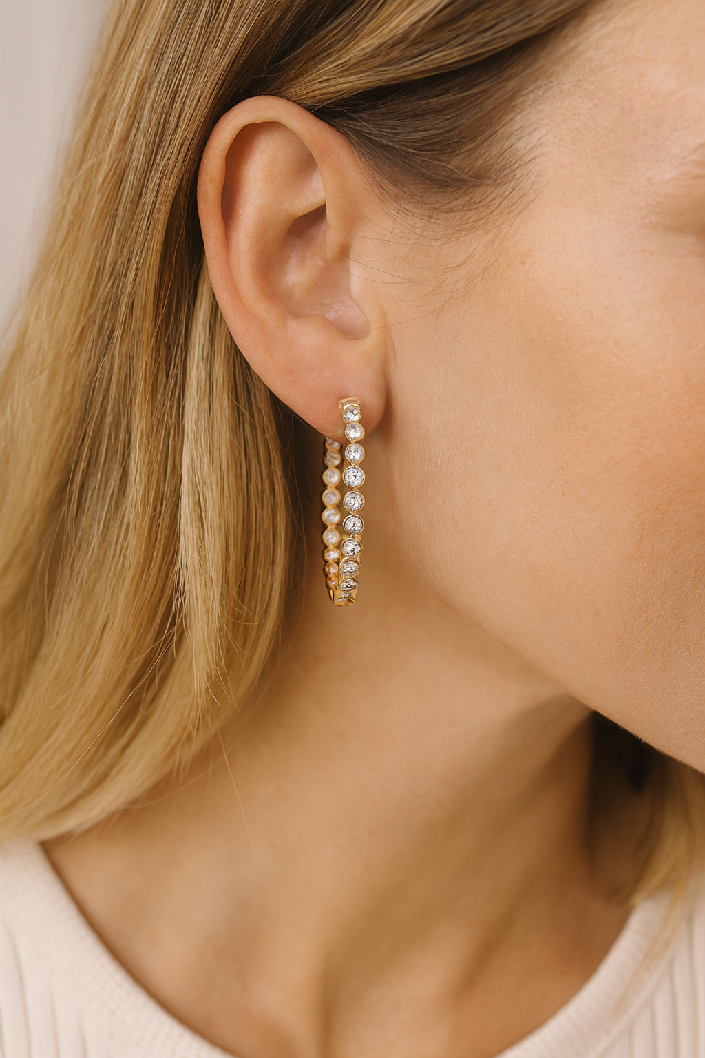 Bezel-Set Diamond Hoop Earrings - The Diamond Channel